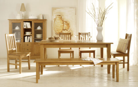 Esszimmer in Eiche seidenmatt geölt bestehend aus Highboard 2-trg. RU-340 – Tisch 180 x 90 cm RU-166 – Stühle...