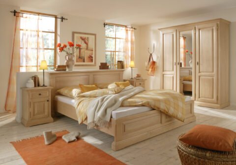 Schlafzimmer in Fichte Ro 138 gewachst bestehend aus Nachtkästchen mit 1 Türe, 1 Schubladen RU-112E – Doppelbett 180 x...