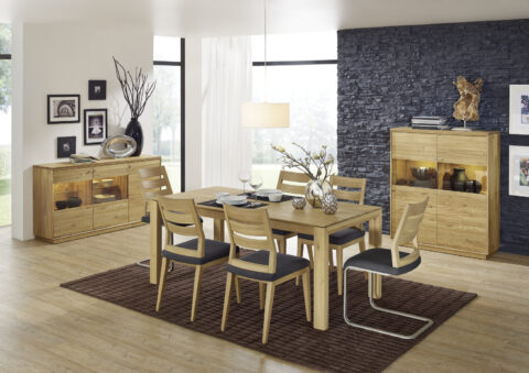 Esszimmereinrichtung ALEXANDRA in Wildeiche massiv, geölt.